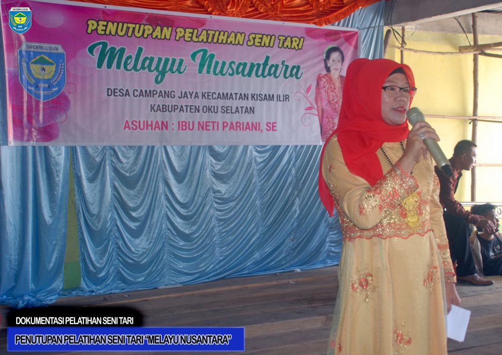 Berdasarkan Laporan Ibu NETI PARIANI, SE sebagai Pembina ataupun pengurus Sanggar Tari bahwa Penutupan Pelatihan seni tari ini di temai dengan “Seni Tari Melayu Nusantara” Desa Campang Jaya Kecamatan Kisam Ilir disampaikan juga dalam sambutannya, beliau mengucapkan terima kasih kepada semua pihak terutama kepada Pemerintah Kabupaten Ogan Komering Ulu Selatan melalui Staf Bidang Kebudayaan Dinas Pariwisata dan Kebudayaan yaitu Bapak ORPEN MALHADI Selaku Seniman dan Pengajar Tari di Desa Campang Jaya Kecamatan Kisam Ilir dan berharap dengan adanya kegiatan seni tari ini anak-anak didik yang telah selesai belajar dapat mengajarkan seni tari kepada anak didik lainnya dan seni tari yang ada dikecamatan Kisam ilir terus meregenerasi dari masa kemasa.